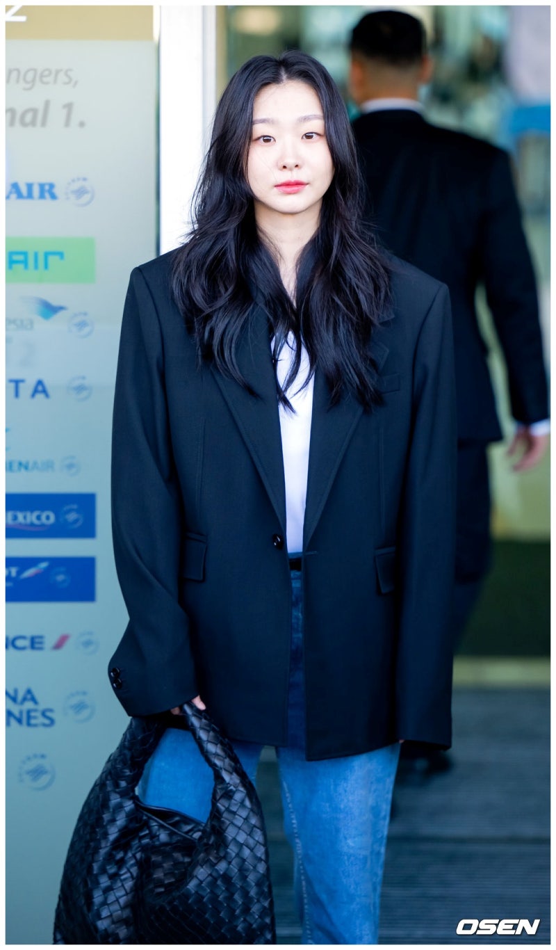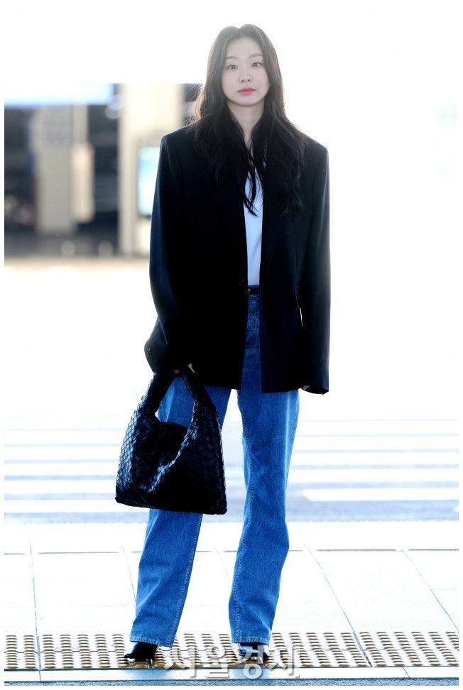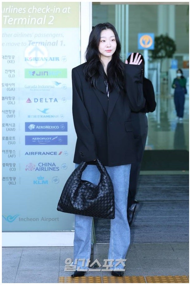오늘의 인간 보테가 베네타 김다미! 시그니처 룩인 화이트 탱크탑, 데님 후라이드 레더 팬츠, 블랙 재킷을 매치해 시크함과 패셔너블한 면모를 동시에 뽐냈습니다 🙂 공항패션은 재킷과 슈즈로 스타일리시하게 보이겠지만, 편안해 보이는데. 완벽하지 않나요? 또한 시대를 초월한 호보백에서 영감을 받아 3D 인트레치아토 기법으로 제작한 홉백을 더해 스타일링을 완성했어요!